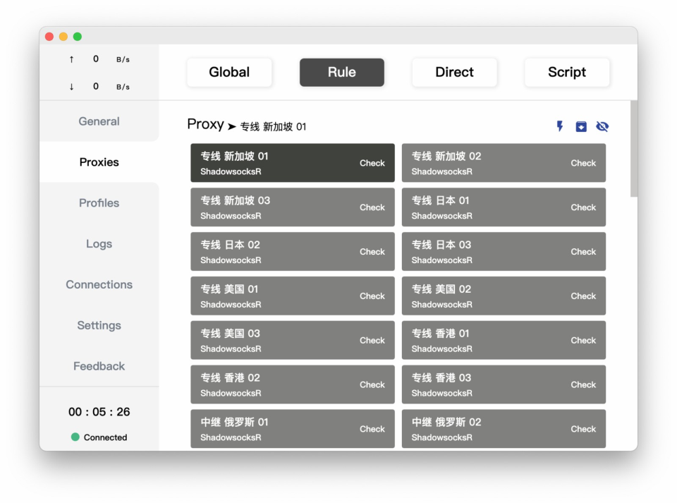 2.开启 System Proxy (系统代理),即可科学上网。