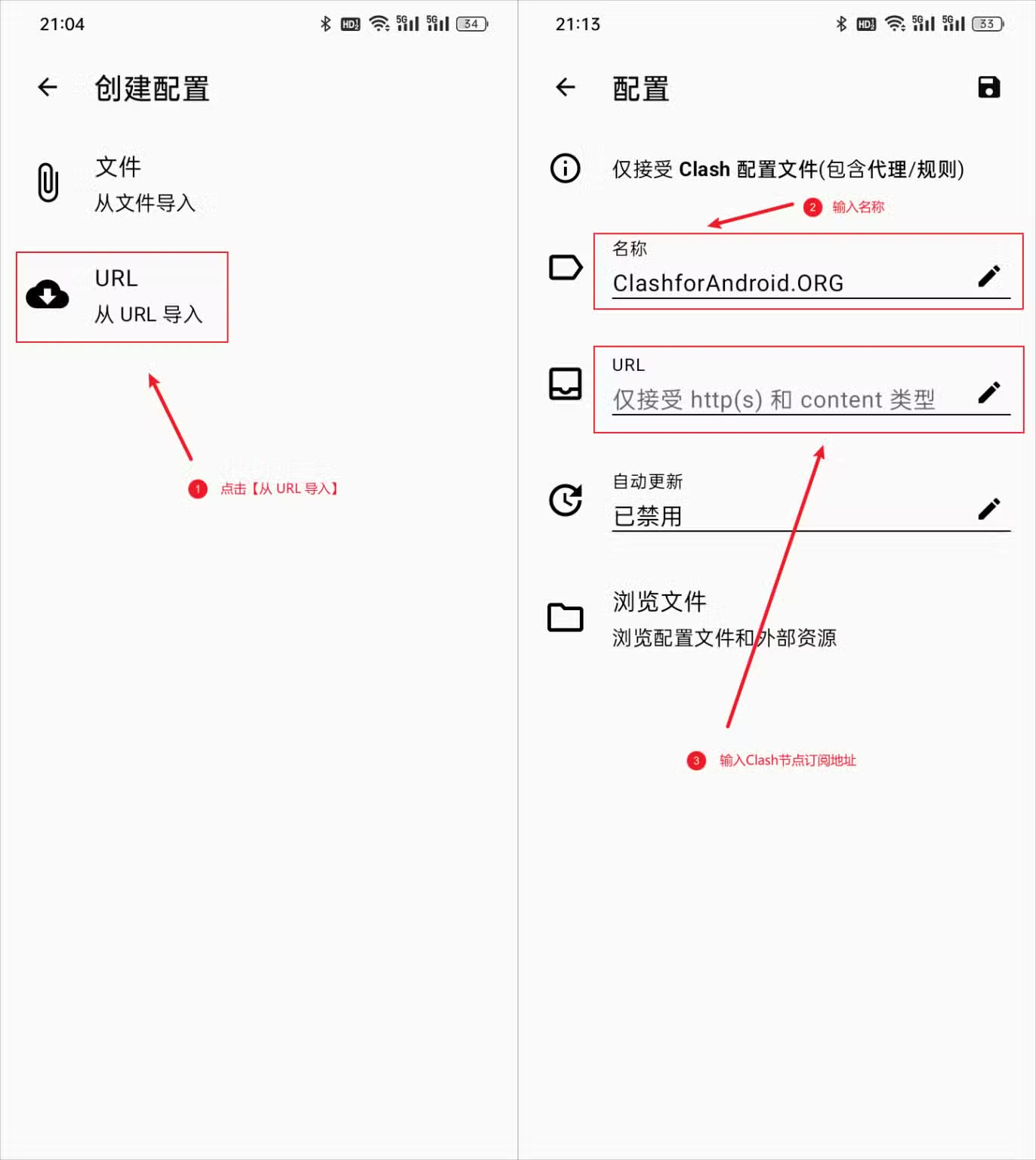URL 导入(推荐):适用于机场订阅地址